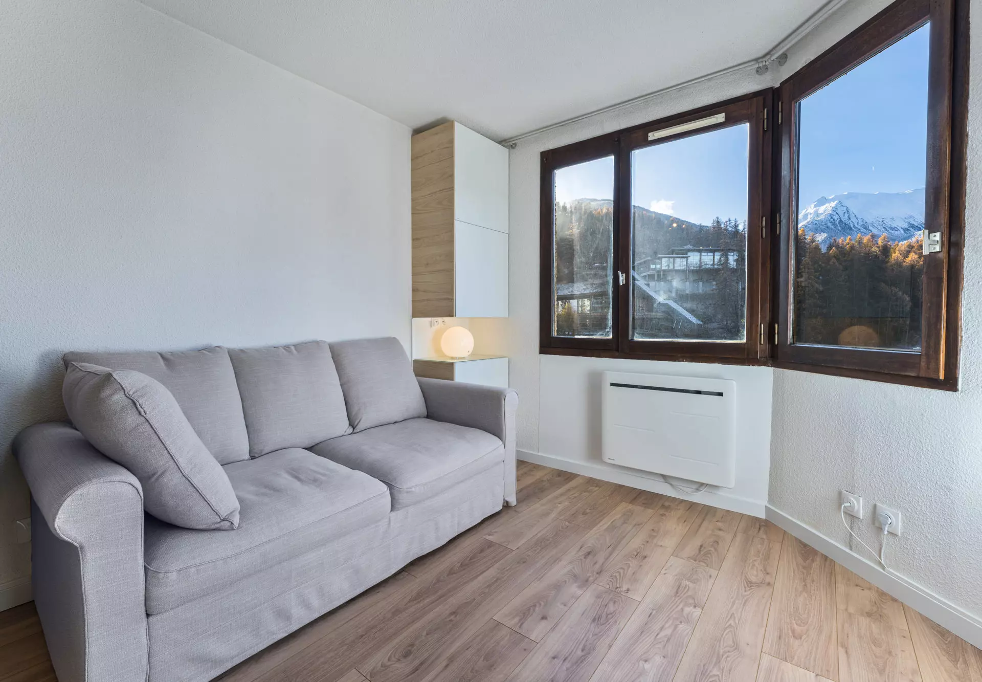 Côté couchages, vous profiterez dans le coin montagne de l'entrée un canapé clic-clac convertible en lit double, avec un lit simple superposé au dessus. Vous aurez aussi un lit double dans le séjour. Une salle de bain avec baignoire et un WC séparé viennent compléter le tout.