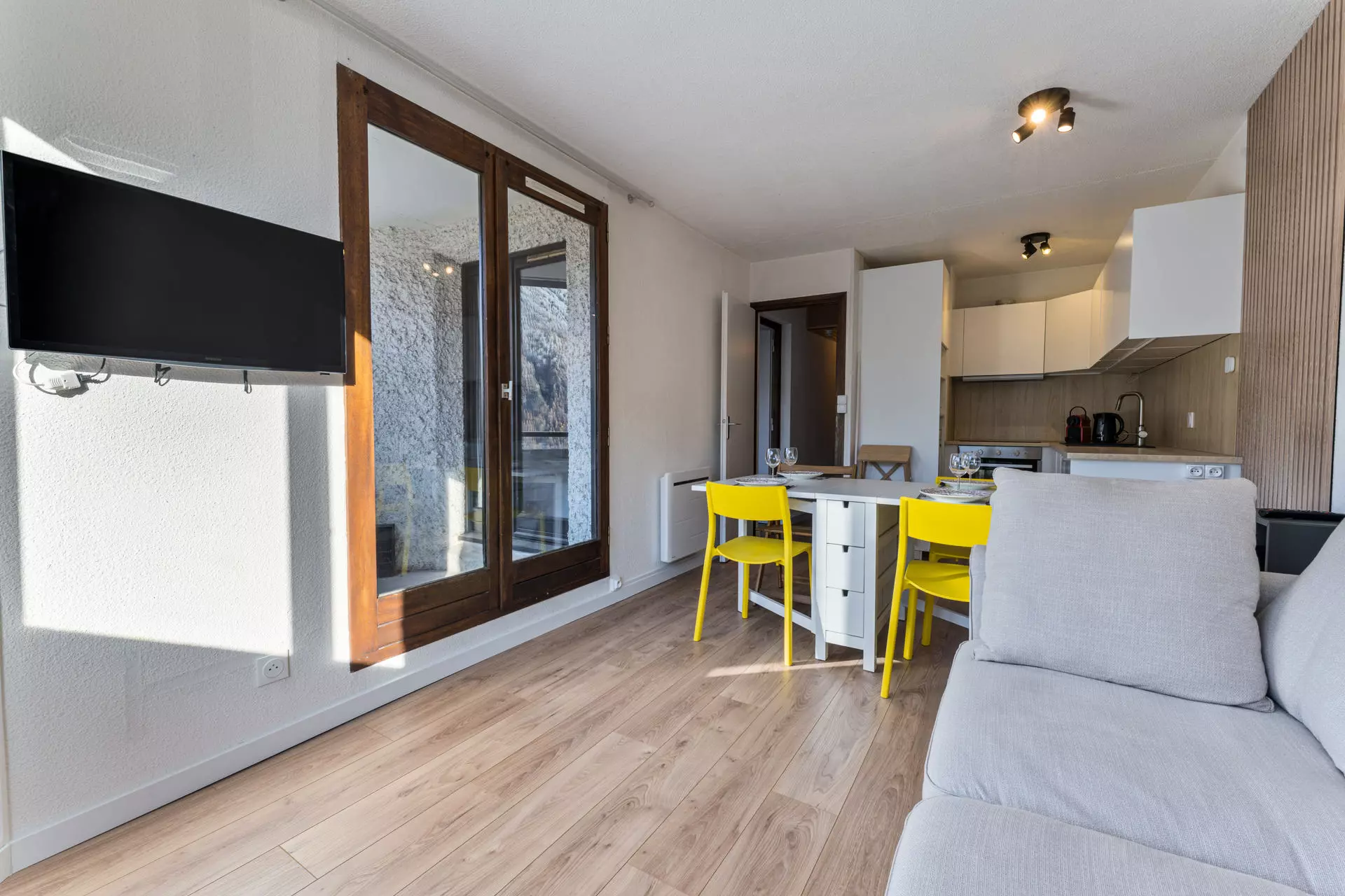Ce joli studio de 25 m² présenté par l'Agence des Orres, a été rénové pour vous offrir un séjour tout confort à la montagne ! Aménagé pour 4 personnes, il est situé au 1er étage de la résidence "Les Gradins". Depuis le balcon, aménagé et exposé à l'ouest, vous profiterez d'une vue splendide sur les montagnes et d'une agréable luminosité.
