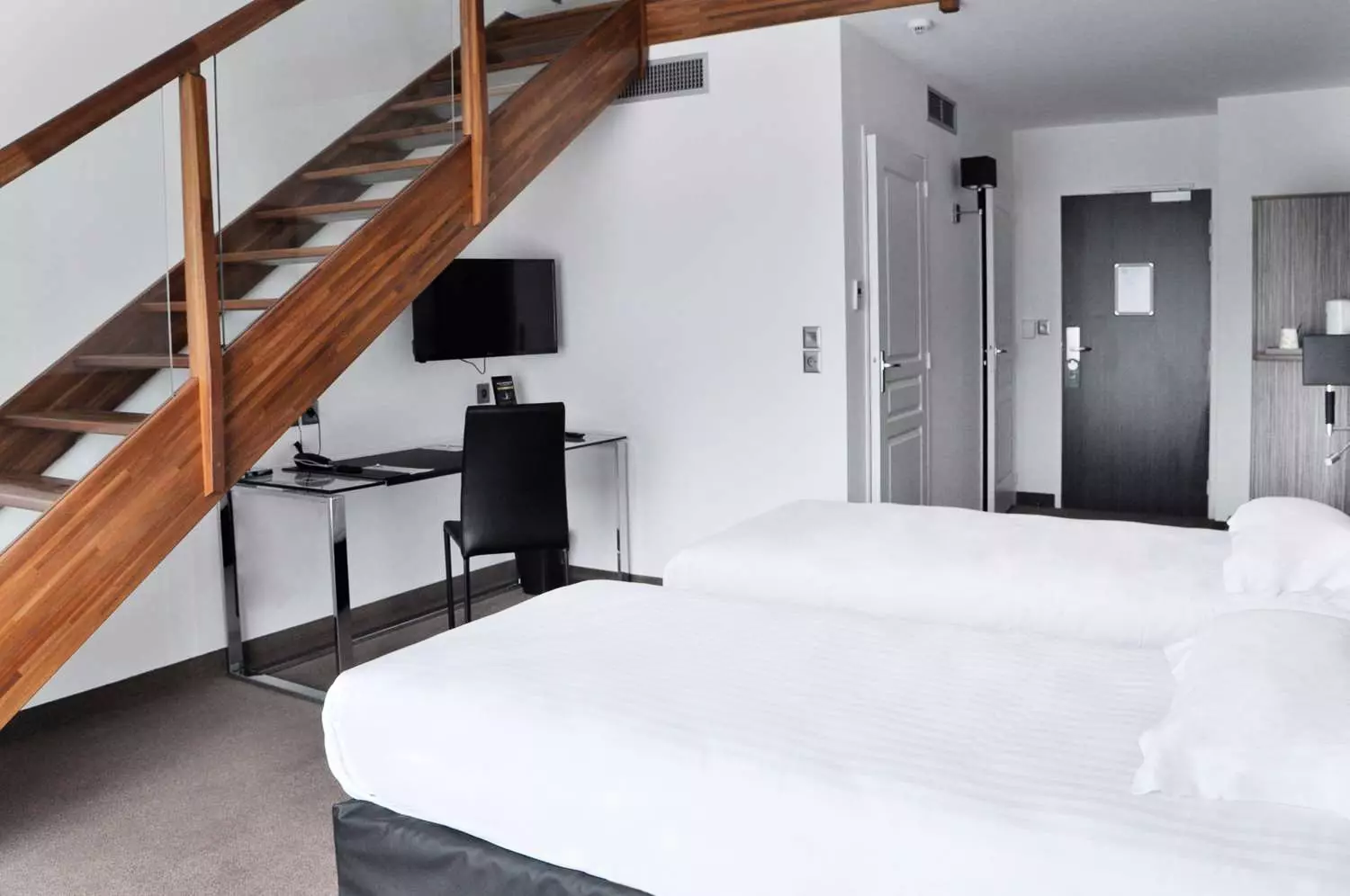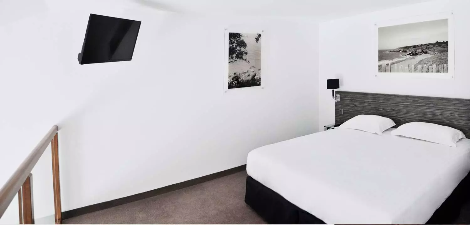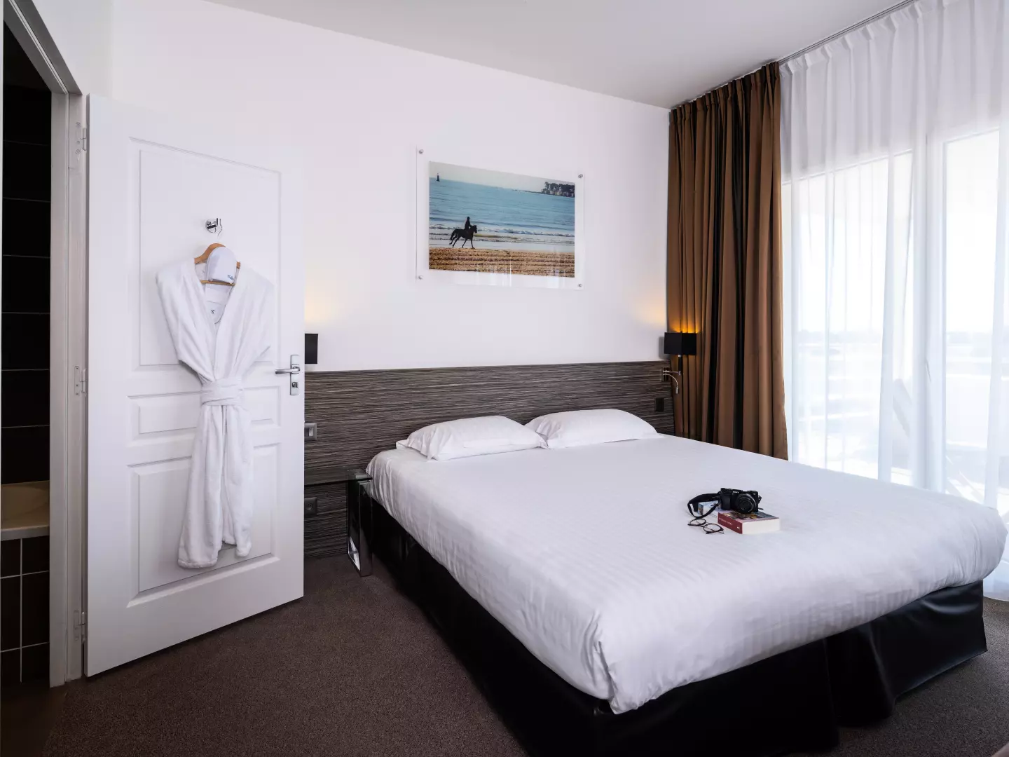 Cet hôtel 4 étoiles, idéalement situé à moins de 3 kilomètres de la célèbre plage de La Baule, se distingue par son ambiance chaleureuse et contemporaine. Ses chambres lumineuses, décorées avec soin, offrent un cocon parfait pour se ressourcer. Vous séjournerez en chambre double ou en suite, confortablement aménagées pour que vous passiez un séjour reposant.