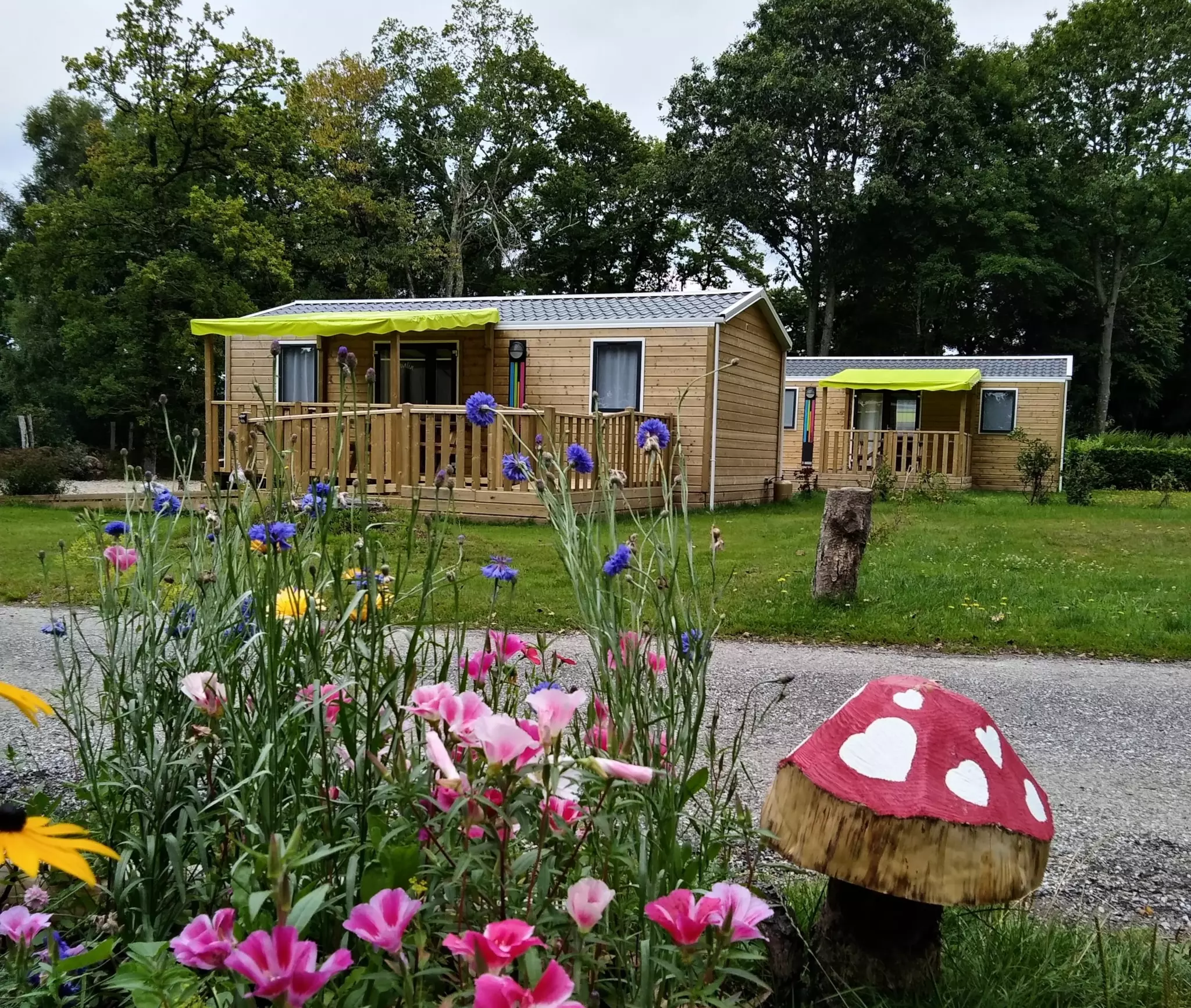 Chics et simples ces 2 mobilhomes 2 chambres, d'environ 30m2 vous apporteront relaxation et confort, ils sont équipés de : - 1 coin cuisine tout équipé avec vaisselle, frigo, cafetière électrique, table de cuisson au gaz 4 feux, hotte, micro-ondes, radiateur dans toutes les pièces - 1 chambre avec 1 lit double de 140x190 - 1 chambre avec 2 lits simples 80 x 190 (ou un grand lit 120cm) - Salle d'eau avec douche, lavabo - W.C séparé - Convecteurs électriques* - 1 salon de jardin avec terrasse - jardin privatif - Télévision incluse - Accès wifi) gratuit à la réception. Coettes et oreillers, possibilité de louer les draps
