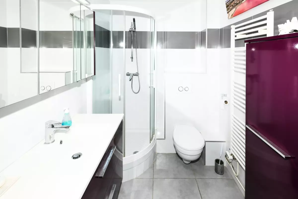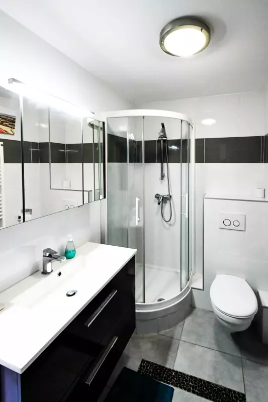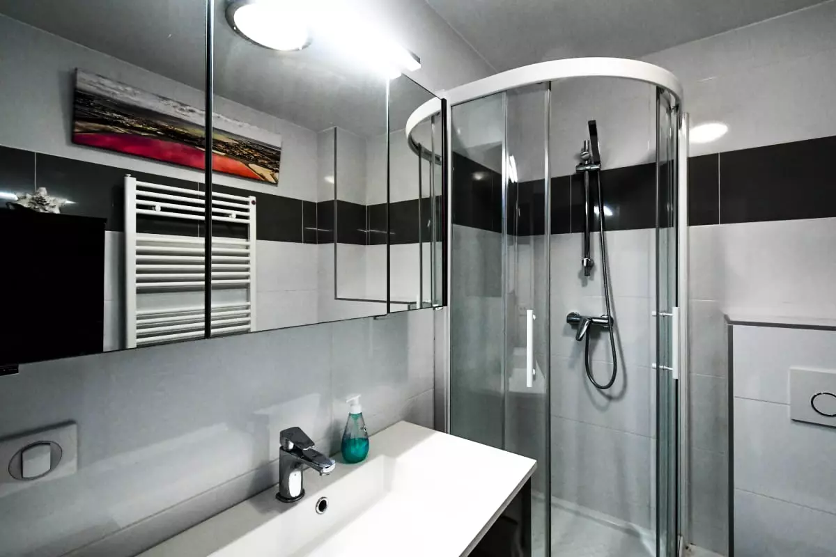 L'appartement dispose d'une salle d'eau avec douche et un WC non séparé.