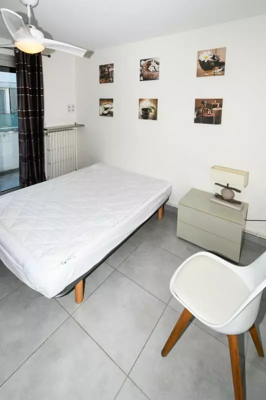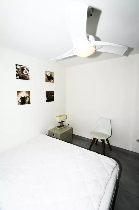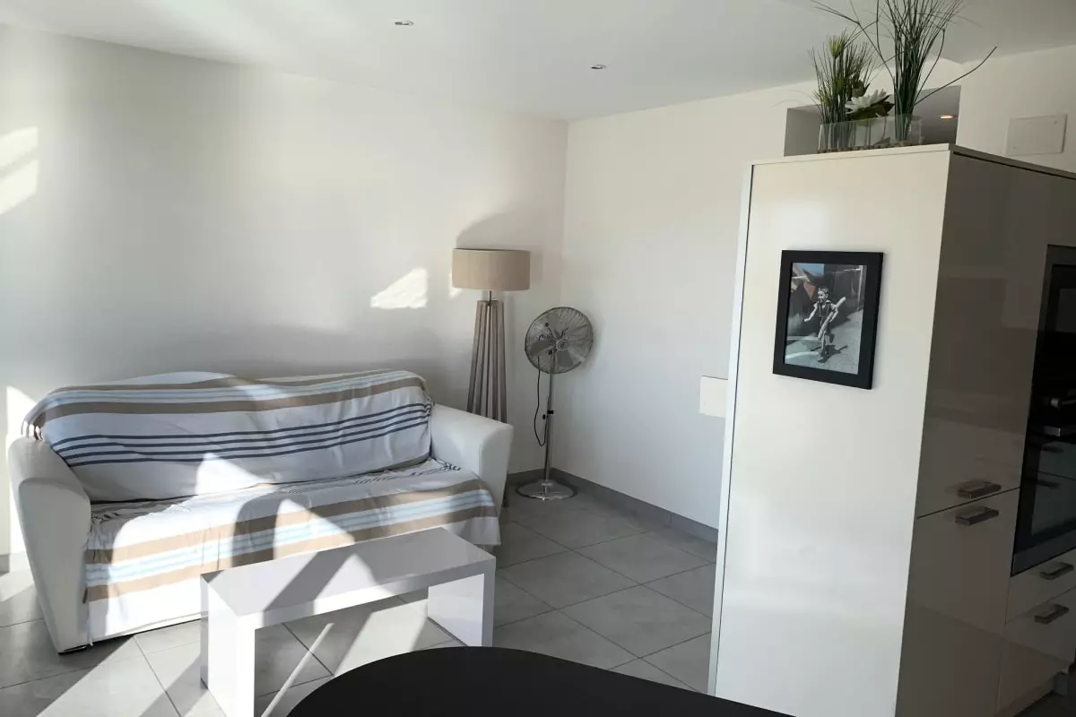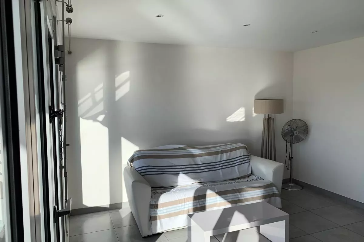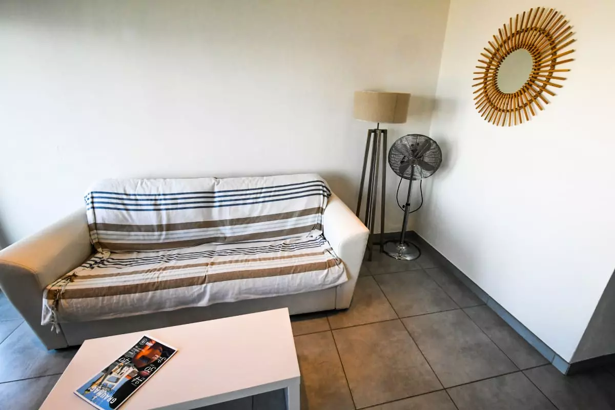 La pièce de vie est agréable, baignée de lumière, avec un canapé convertible, une TV et la climatisation. Vous pourrez apprécier le calme et vous reposer dans la chambre chaleureuse à la décoration épurée.