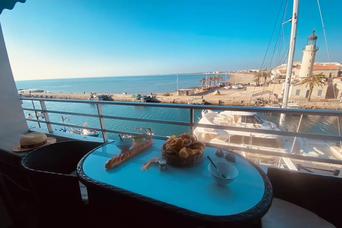 Cet appartement se trouve sur le quai Colbert du Grau du Roi, lieu identitaire et emblématique marquant l'entrée dans le Port de Pêche. Face au vieux Phare, face à la mer, il n'y a pas de plus bel emplacement pour vivre la vie locale, voir les chaluts partir en mer et revenir de la pêche, regarder les petits métiers trier le poisson et mettre leurs étals en place. Un formidable lieu de vie