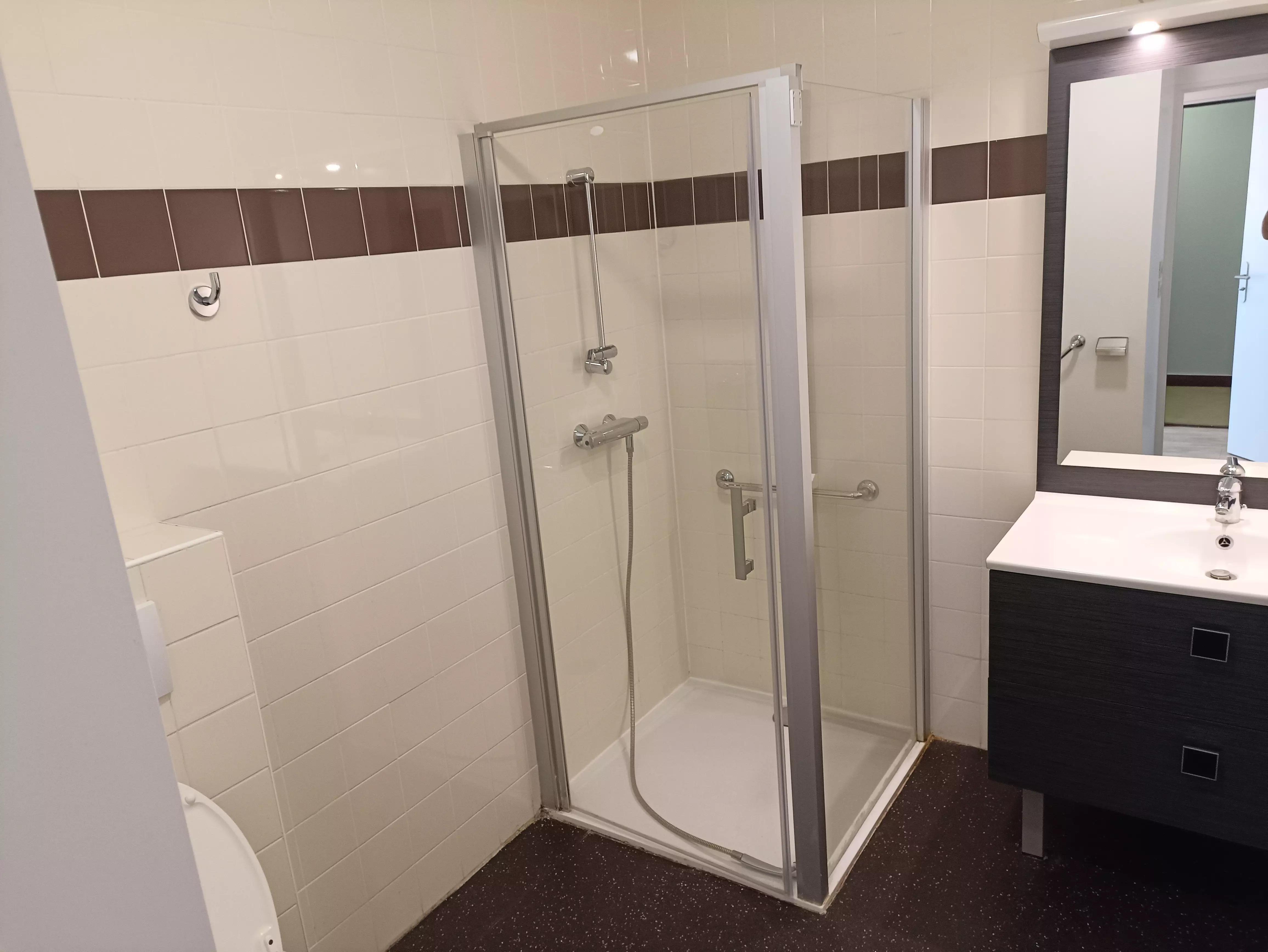 - Salle de bain avec douche et WC