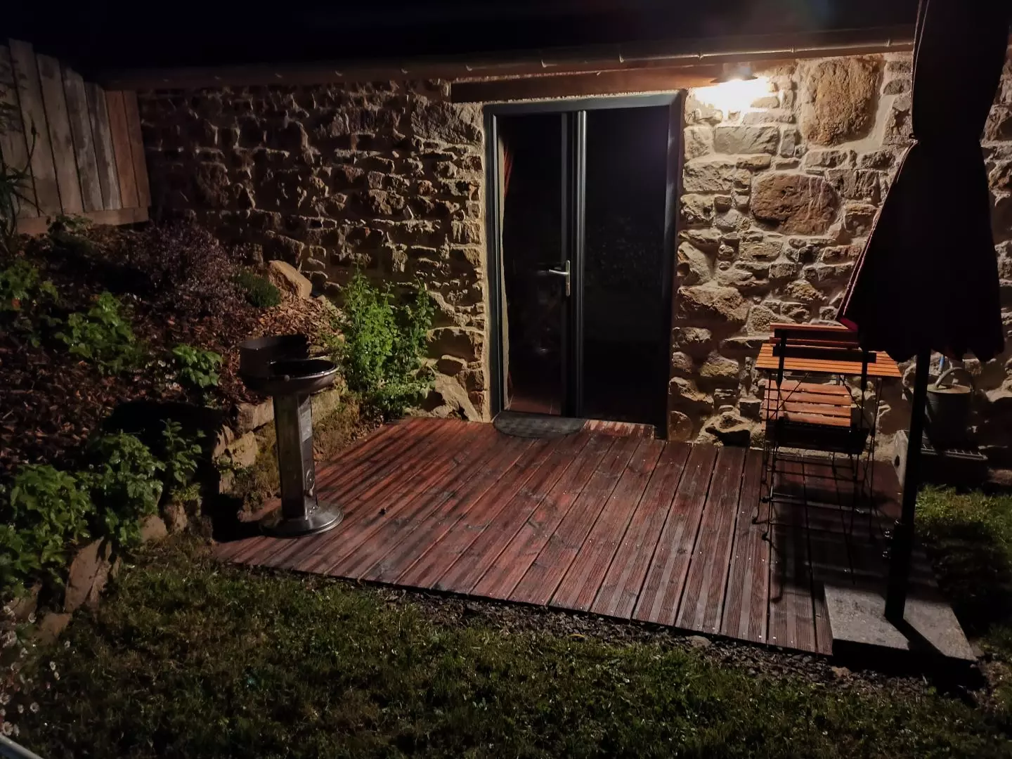 - Au sud, terrasse bois de 6,3 m² et jardinet paysagé de 35 m²,