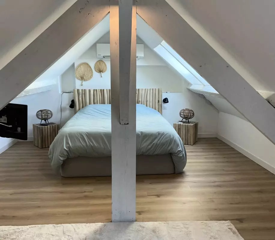 Située en bordure de la plage du Crotoy, cette dernière s'inscrit dans le paysage avec une architecture picarde traditionnelle de la Côte d'Opale. Vous vous installerez dans un appartement lumineux qui ouvre sur les couleurs sublimes de la baie de Somme. Conçu comme un cocon, chaque intérieur est décoré de bois flotté et de teintes pastel qui apportent une touche de sérénité et une atmosphère ressourçante.