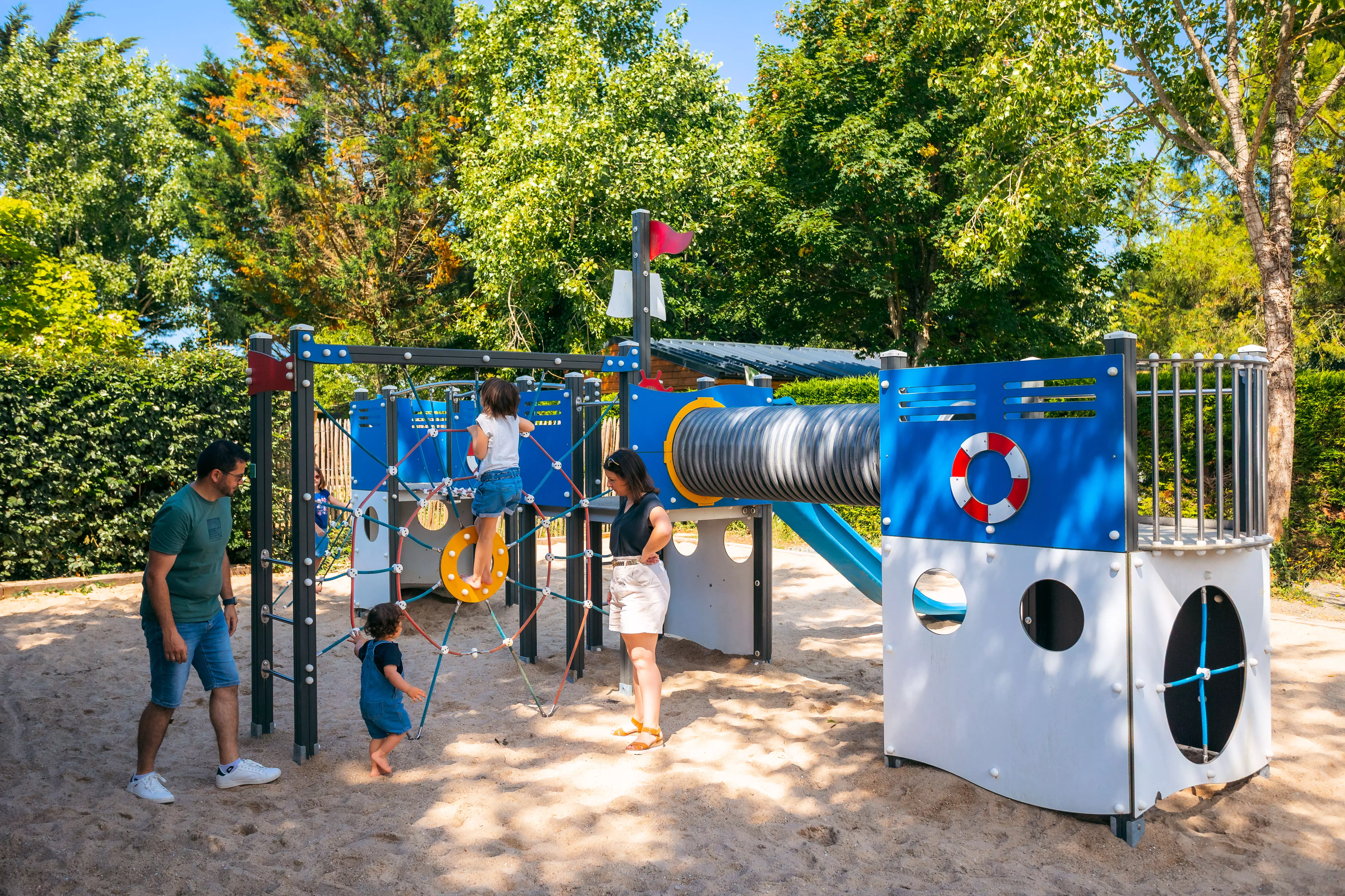 Description : Piscines extérieures & toboggans - Ouvertes et chauffées* toute la saison > 1 toboggan à bouées « Wave » > 1 toboggan à boucle > 1 toboggan à sensation « Space Hole » > 4 toboggans pentaglisses > Bassin avec rivière de marche et massante > Pataugeoire avec jeux ludiques : mini toboggan, seaux... > Banquettes anatomiques, cascade, plages de transats Jardin d'eau extérieur - Ouvert et chauffé* toute la saison > 2 mini-toboggans > Arcs-en-ciel de jets d'eau > Seau d'eau à bascule & Jeux ludiques