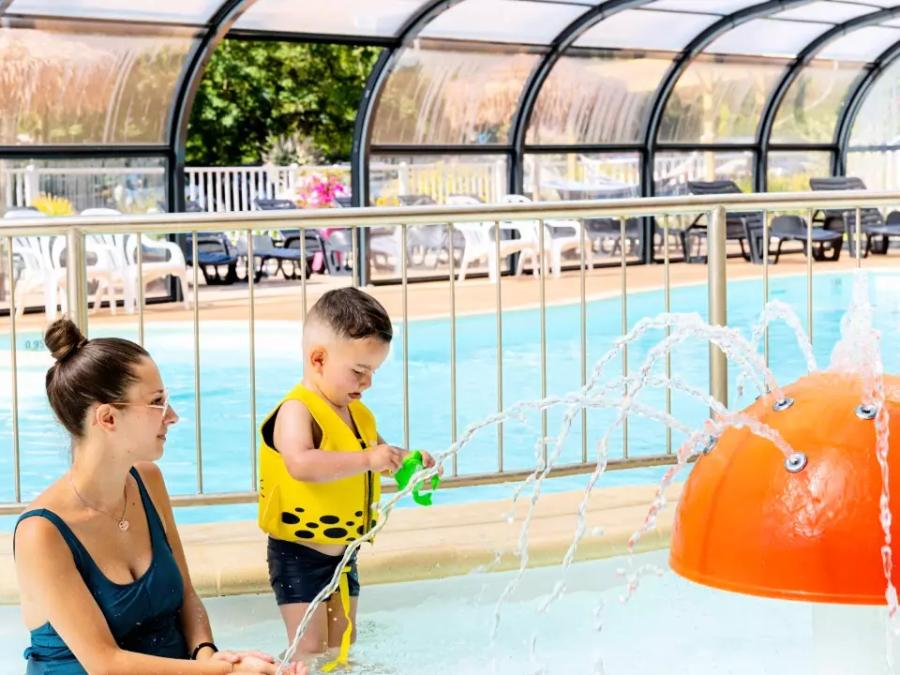 Vous pourrez profiter d'un magnifique parc aquatique composé d'une piscine couverte et chauffée (ouverte toute la saison) avec espace de balnéothérapie et système à contre-courant, et d'une piscine extérieure chauffée (ouverte de mi-juin à mi-septembre) avec pentaglisse aquatique.