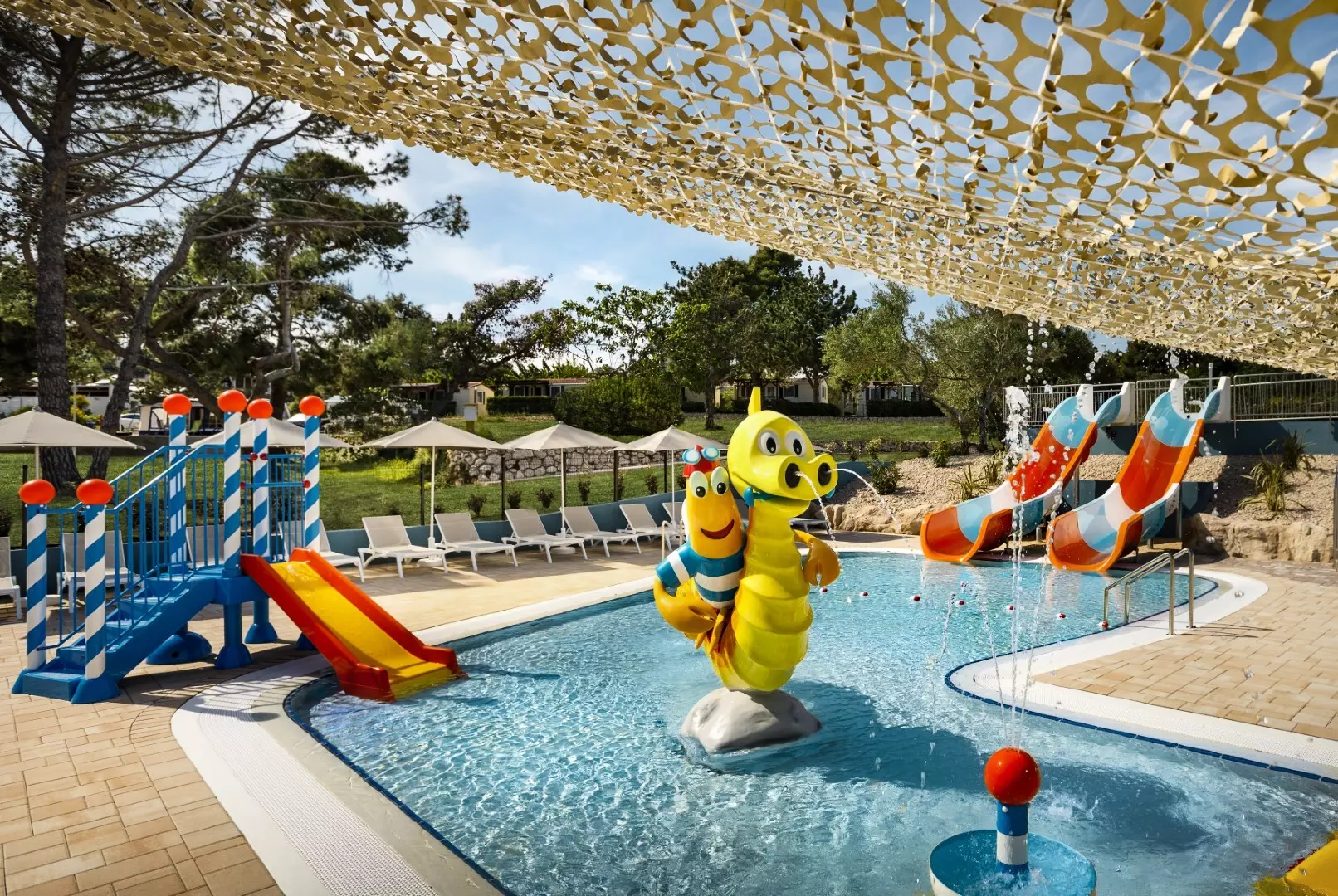 Infos supplémentaires sur l'espace aquatique : À partir de cette année, l'entrée au parc aquatique "Aquamar Lanterna" ne sera possible qu'avec un bracelet Cashless. Pour obtenir ce bracelet, 5 points sont disponibles dans le camping. Ce bracelet vous est remis en échange d'un dépôt de garantie (soit environ 7 ou 8 euros). Le bracelet vous servira également comme une méthode de paiement, avec un paiement minimum de 100 - Hrk, soit 14 à 16euros, pour certains services du camping : nourriture, boissons, chaises longues, etc... Découvrez l'immense parc aquatique composé de 10 piscines. Les petits pourront s'amuser à travers les différents toboggans, le bateau pirate ou encore se rafraichir dans la pataugeoire. Les plus grands pourront profiter des piscines et de leurs jets massant, se prélasser sur les transats autour de l'espace aquatique ou bien s'attabler au bar. L'espace aquatique est ouvert de mi-mai à mi-septembre. Plans d'eau