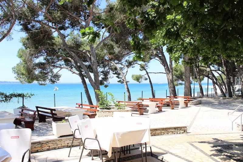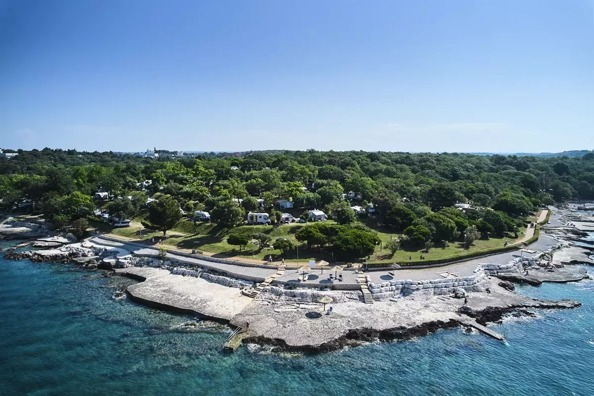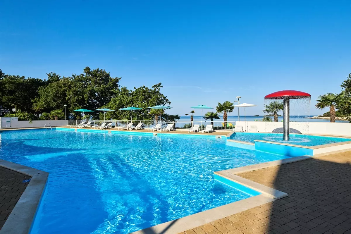 453579Camping Bijela Uvala, 4*00CAMPINGN187183Le camping Bijela Uvala, situé à seulement 5 km au sud de Porec sur la côte adriatique, vous promet des vacances familiales au bord de la plage. Sur place, profitez d'un espace aquatique comprenant des lagons extérieurs, une pataugeoire et un champignon d'eau pour le plaisir des petits.Pendant les vacances d'été, des animations variées sont organisées pour toute la famille et un club-enfants accueille les plus jeunes de 4 à 12 ans.De nombreux services vous attendent sur place : snack-bar, supérette, restaurants, ainsi que des installations de loisirs et de sport pour agrémenter vos journées.Logement seulSans TransportEquipements autour de la piscine