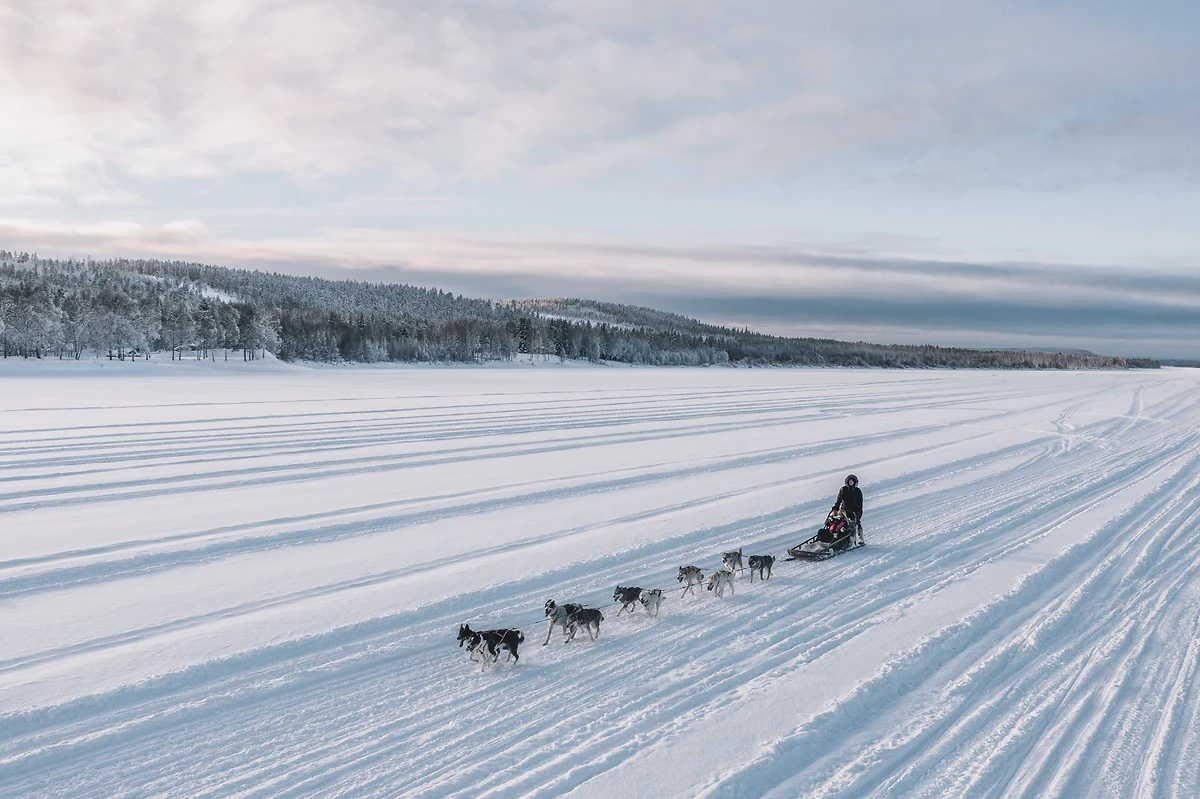 Petit déjeuner à l´hôtel puis départ vers le camp des huskys pour une expérience absolument inoubliable de balade en traîneau tiré par les chiens. Après une présentation de l'activité et de ces sportifs de l'arctique vous partirez pour un petit safari d'environ 5 km (durée de l'activité : 2h, 5km + transfert). Ce safari vous conduira au milieu des espaces sauvages de Laponie avec des attelages de chiens débordant d'enthousiasme. Après le safari, savourez un jus de baies bien chaud autour d'un feu tout en écoutant des histoires sur la vie des huskys.