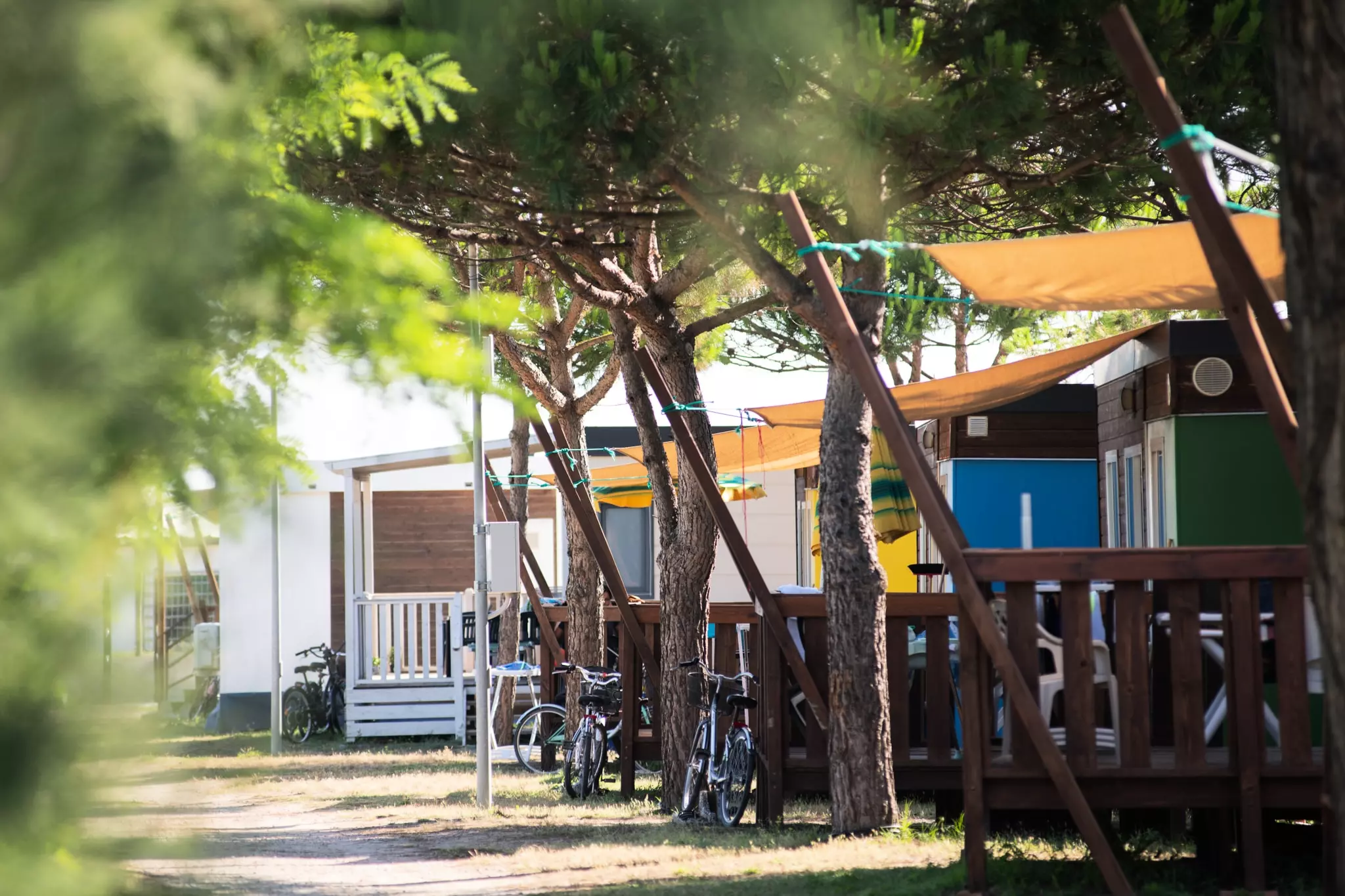 Nos Mobile-homes sont plongés dans une pinède séculaire, créant ainsi le cadre idéal pour des vacances paisibles, loin du rythme trépidant de la vie quotidienne et immergées dans la nature.