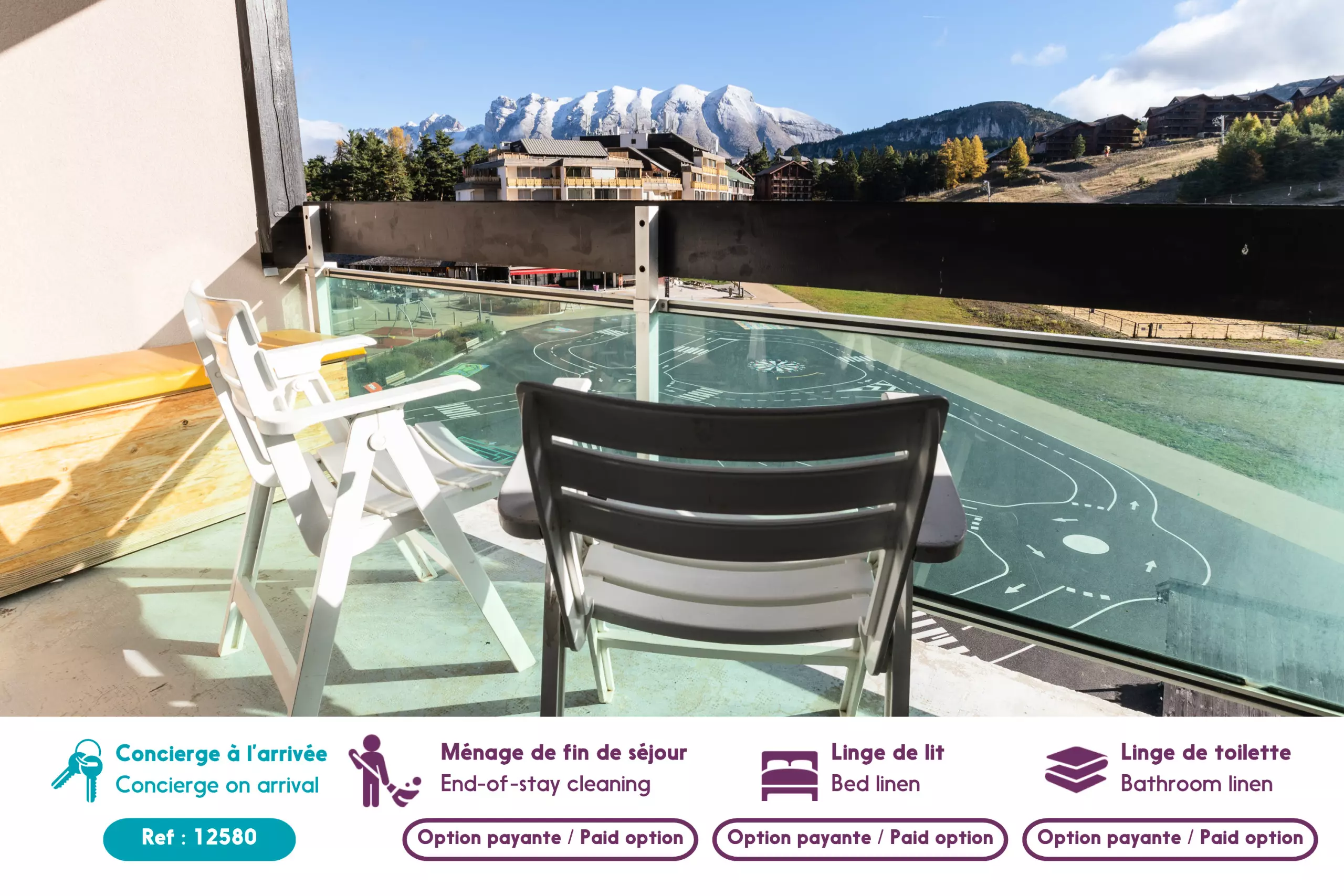 Située à proximité du cœur de la station et à deux pas des commerces et des restaurants, la résidence La Crête du Berger vous accueille dans un cadre chaleureux tout en vous offrant une vue imprenable sur le massif du Grand Ferrand. Sa situation, au cœur des Alpes du Sud, est idéale tant au niveau de l'ensoleillement que de l'enneigement. Vous pourrez profiter de la piscine (exclusivement l'été) et de nombreuses activités proposées sur la station. Elle est composée de différents appartements allant de 4 à 8 personnes et de chalets pour 8 personnes. La piscine est accessible uniquement en saison d'été (entre le 1/07 et le 31/08/2026), durant la période d'ouverture de la station. Les arrivées se font de 16h à 19h à la réception de la résidence Les Flocons du Soleil. En dehors de ces horaires, merci de prévenir la réception à l'avance au : 04.92.43.22.03 Cet établissement respecte les recommandations gouvernementales et fait le maximum pour vous accueillir dans les meilleures conditions. Cependant certaines prestations peuvent être limitées ou indisponibles.