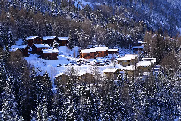 LES EPERVIERES - Lotissement de petits chalets à l'orée de la forêt, divisés en 6 appartements. Les chalets sont situés sur le haut de la station à 400m du centre station et du départ de la télécabine, sous la piste de ski verte retour station.