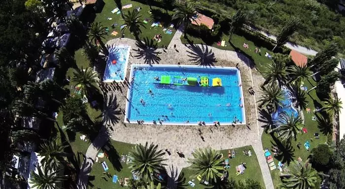 Description : Le complexe dispose de 2 piscines -ouvertes en saison une pour adultes (env. 20 x 13 m.) et 1 pour enfants (env. 10 x 6 m.) entourées d'un solarium et jardin avec des arbres.