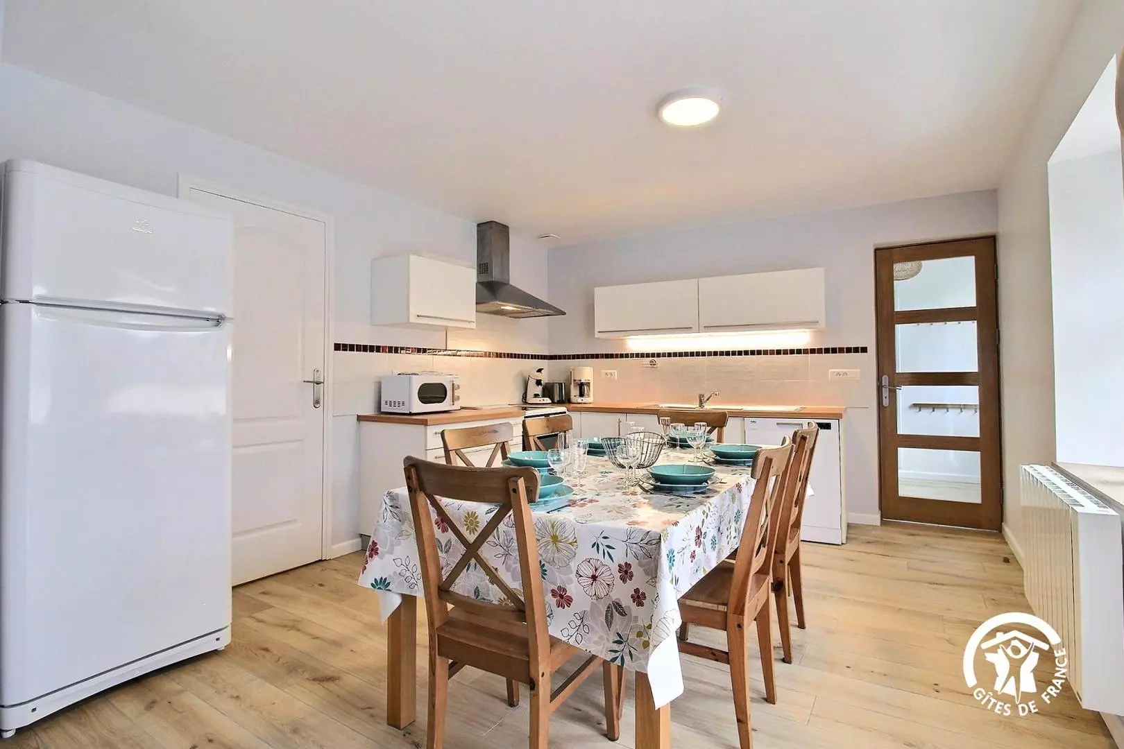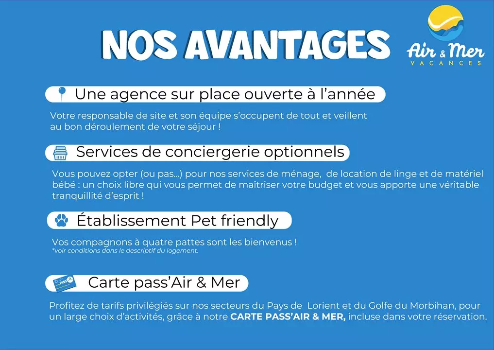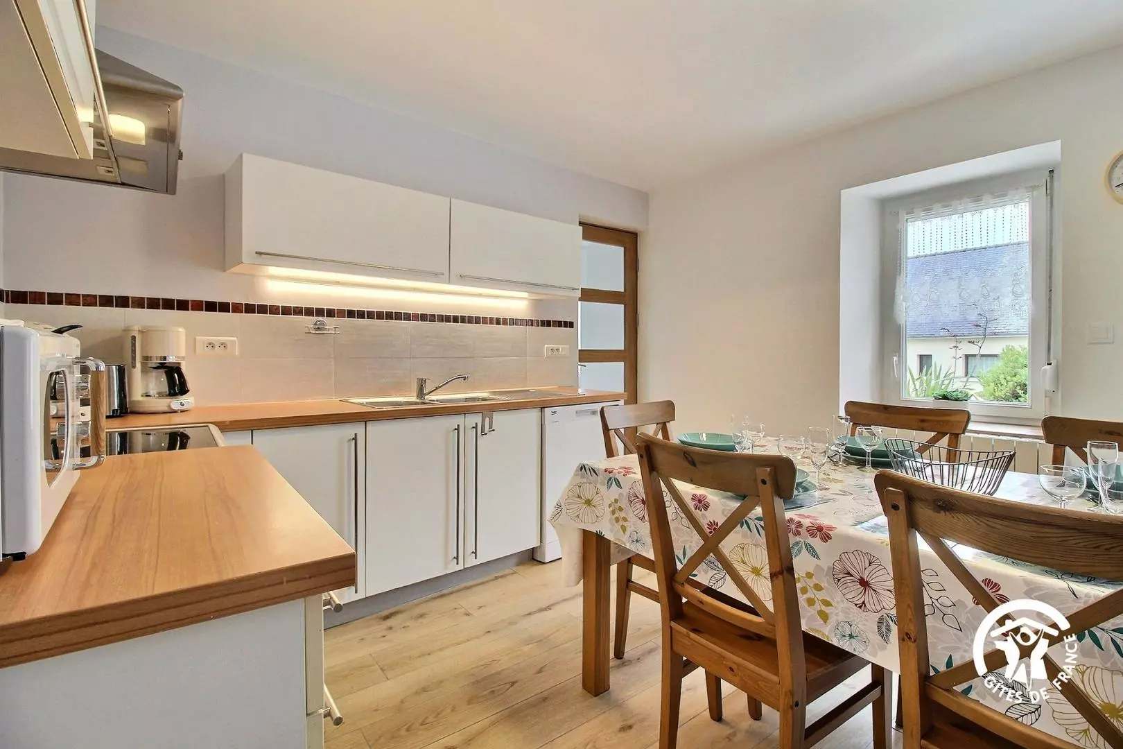 Dans un petit hameau, à 5 minutes de la mer, ce gîte spacieux vous propose un séjour tout confort en famille ou entre amis. Dès l'entrée, vous serez séduits par les volumes généreux et la convivialité des lieux : au rez-de-chaussée, une vaste pièce de vie lumineuse rassemble une cuisine bien équipée, un espace repas et un grand salon. Située à Plœmeur, charmante station balnéaire, la maison bénéficie d'un emplacement privilégié. La première plage n'est qu'à 1,2 km, idéale pour les baignades et les après-midis farniente. Elle est accessible à pied par un chemin piéton. Les ports typiques de Lomener et Kerroc'h vous invitent à la détente, entre balades en front de mer et pauses gourmandes en terrasse. Vous apprécierez le magnifique golf face à l'océan et le centre aquatique tout proche. Le bourg, animé et commerçant, répondra à tous vos besoins. Les cyclistes et randonneurs pourront emprunter la voie verte située à 100 m du gîte, menant vers les plages et les paysages côtiers. Cet établissement respecte les recommandations gouvernementales et fait le maximum pour vous accueillir dans les meilleures conditions. Cependant certaines prestations peuvent être limitées ou indisponibles.