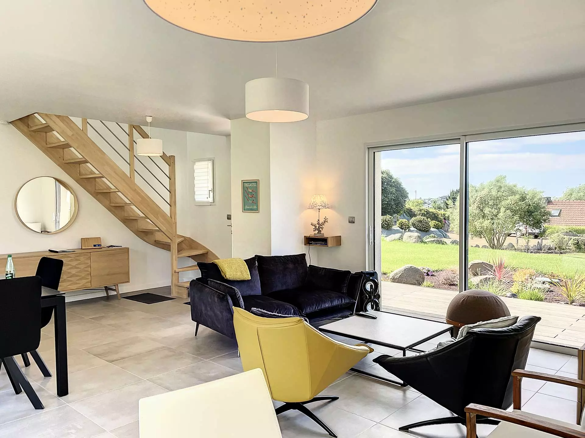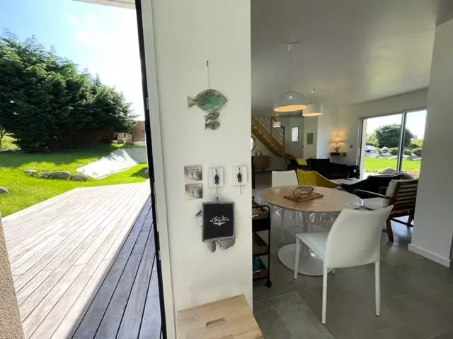 Maison sur pilotis située à Trégastel, au cœur de la Côte de Granit rose, offrant un grand confort avec des matériaux de qualité. Mitoyen par l'arrière, à l'habitation des propriétaires, tout a été conçu pour respecter votre intimité. Du salon, la vue panoramique s'offre à vous grâce aux larges baies et aux gardes corps vitrés.