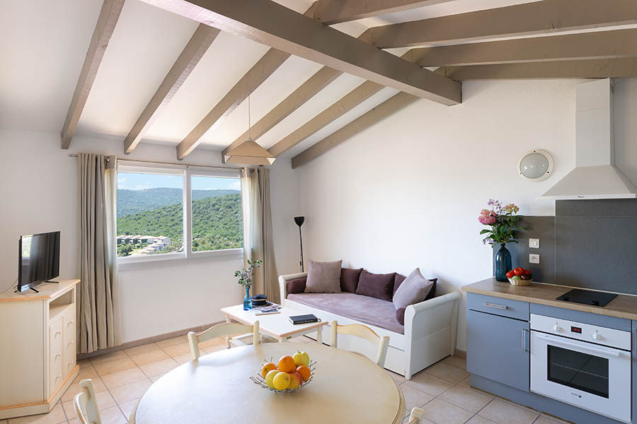 Entièrement construite en pin laricio dans le cadre verdoyant d'un parc arboré, la résidence séduira les vacanciers aimant préserver leur indépendance, à deux pas de l’une des plus belles plages de Corse.