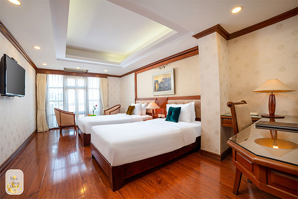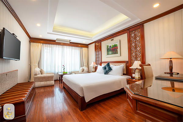 Les chambres offrent tout le confort nécessaire avec des équipements modernes, et sont décorées d’un mobilier en bois sombre. Des carreaux en céramique Bat Trang sont également parsemés ici et là.