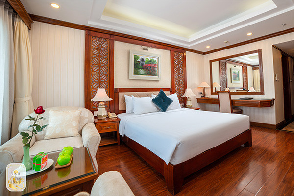 La chambre The Nova offre un mélange élégant de confort contemporain et d’éléments traditionnels vietnamiens. Elle est généralement spacieuse et décorée avec goût.