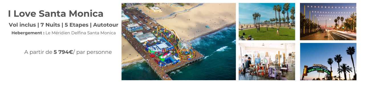 Santa Monica séduit par sa richesse culturelle, son architecture incomparable et sa nature exceptionnelle. Pour des plages emblématiques ou des quartiers historiques, Santa Monica est votre destination. Pendant votre séjour à Santa Monica, vous pourrez explorer le célèbre Santa Monica Pier, mais aussi découvrir la beauté sauvage des montagnes.